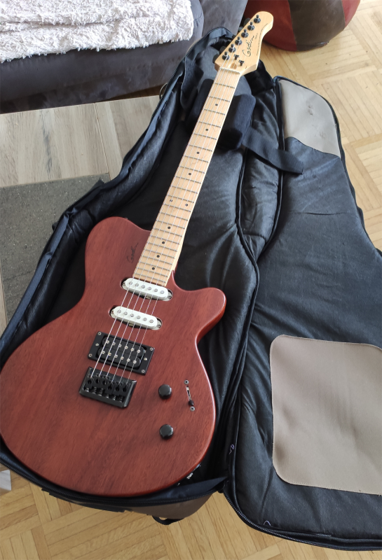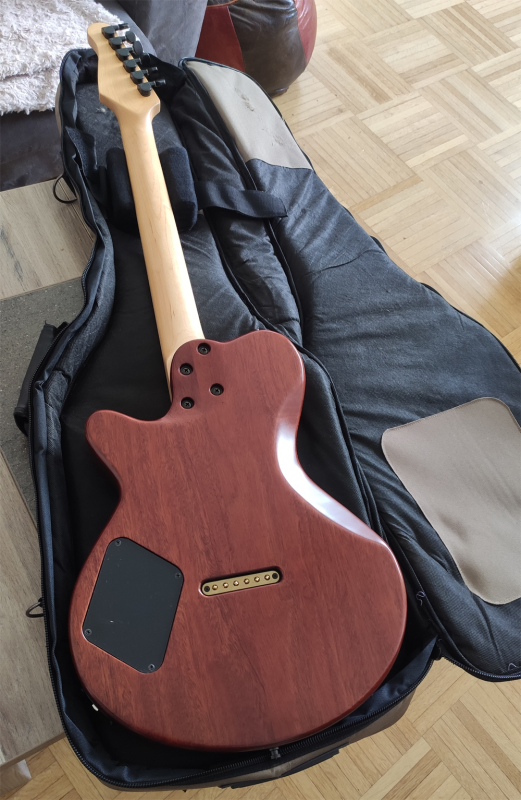 Le corps est en acajou massif, le manche, très agréable au passage, est en érable dur ainsi que la touche.