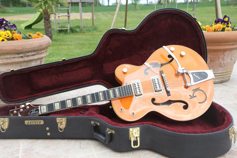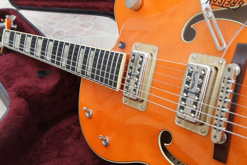 Vends Gretsch 6120 RHH Reverend Horton Heat de 2010. Magnifique guitare, touche ébène, ... sonne d'enfer. En état quasi neuf à l'exception d'un léger poc sur le manche sans incidence sur le jeu (voir photos). Son étui d'origine ainsi que tout les papiers d'origine dont son certificat d'authenticité sont inclus.