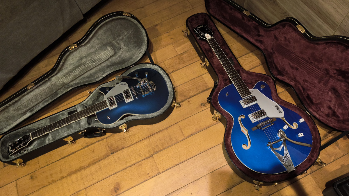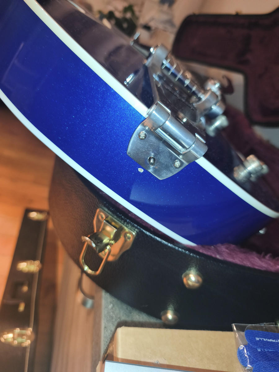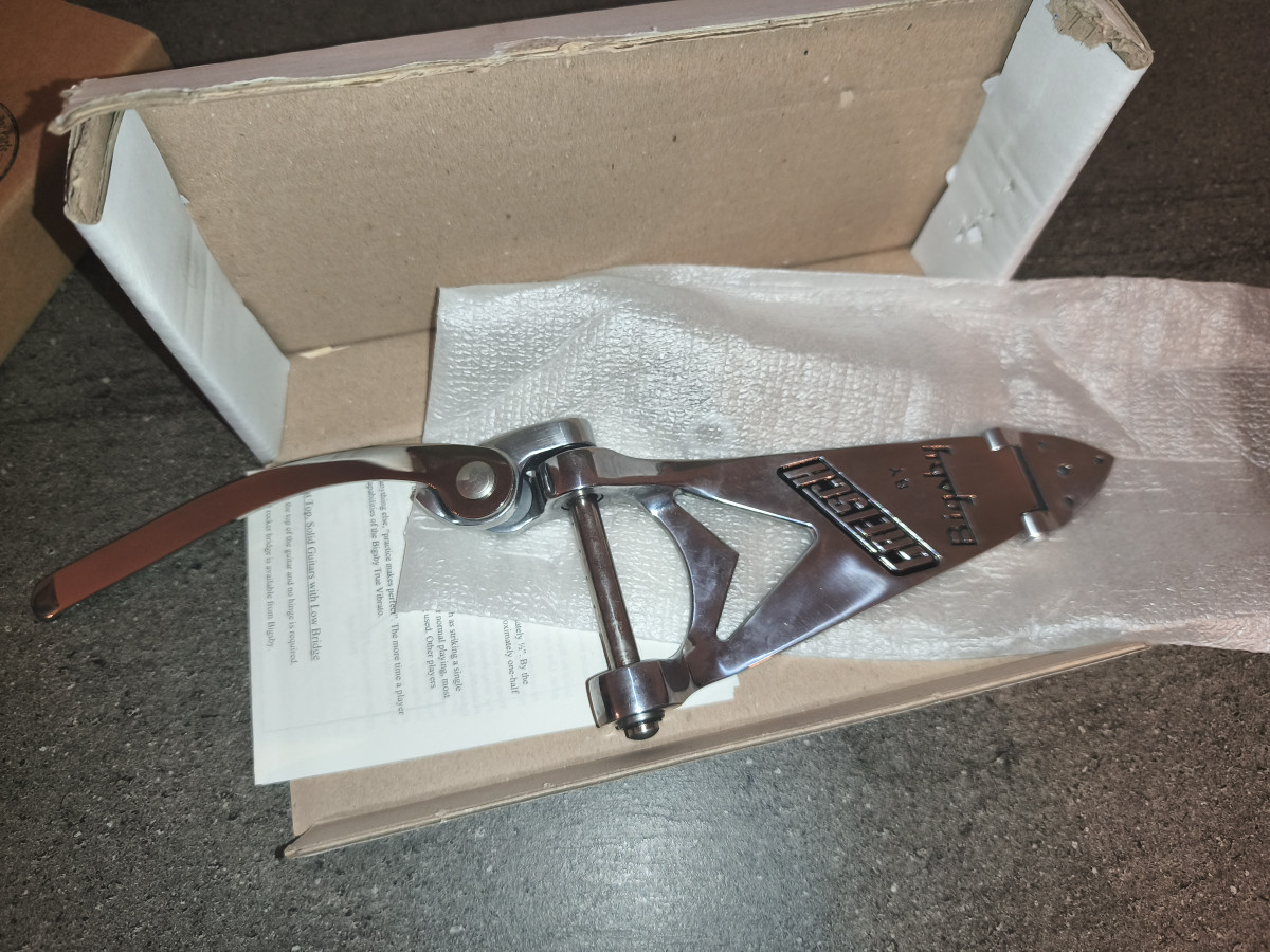 Je l’ai remontée comme à l’origine, toutes les upgrades sont à vendre séparément (sauf les mécaniques autobloquantes et les TV Jones que j’ai montés sur une autre Gretsch). Si ça vous intéresse, n’hésitez pas à me le dire --> je vous conseille le bridge à rouleaux et le vrai bigsby. Je m’occuperai du montage évidemment.