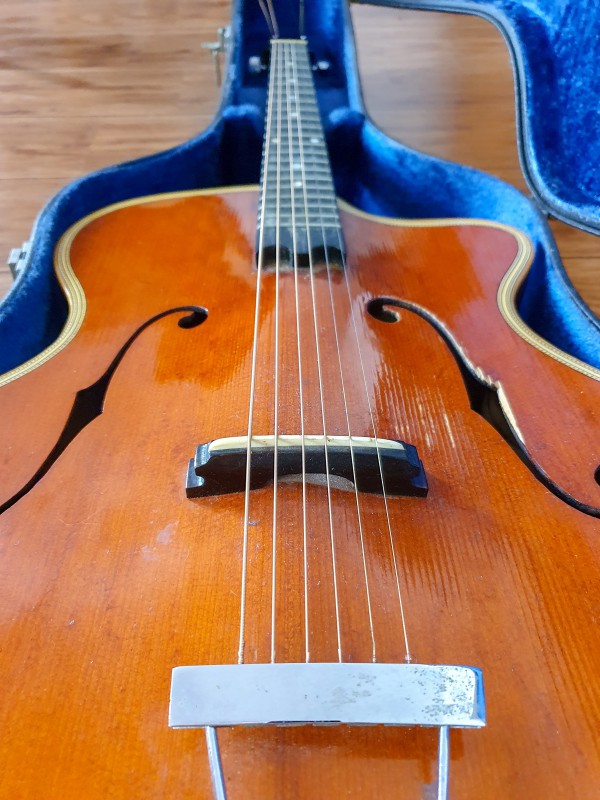 Très agréable à jouer, la guitare est magnifique avec une forte consonance manouche. C'est mon ami qui a soumit les plans aux frères Gérome qui ont tous les trois travaillé sur la guitare.