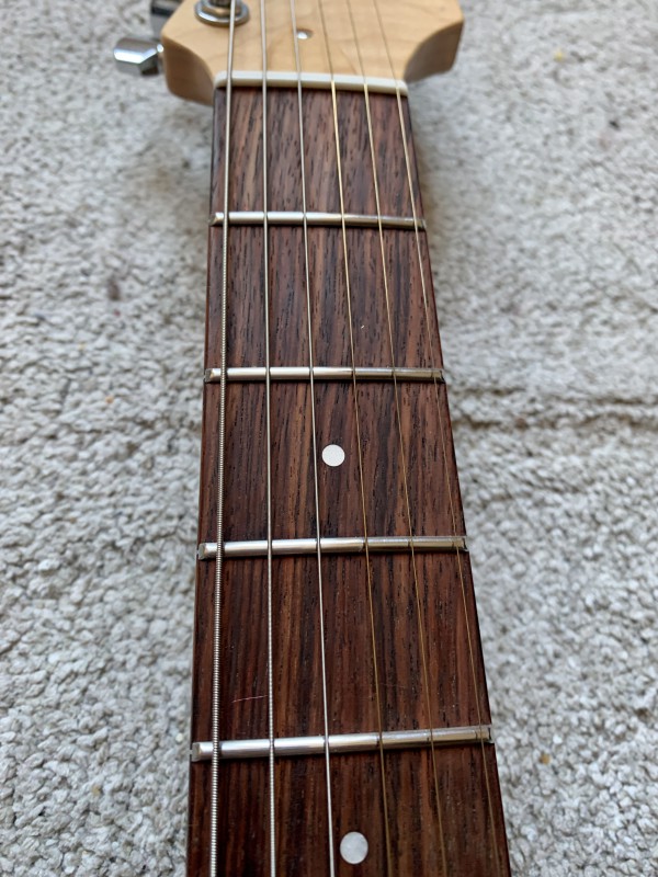 Achetée en 2015, je l’ai beaucoup jouée, mis à part un très léger poc sur el manche (voir photo), elle est en très bon état.