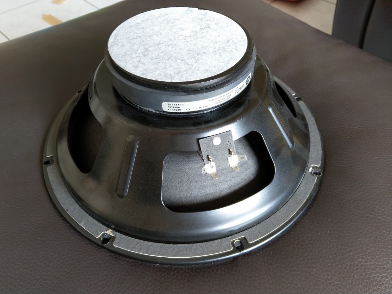 L'étiquette a été décollée, je suis presque sûr que c'est un Peavey Blue Marvel. Eminence m'a confirmé par email que c'était un HP qu'ils fabriquent pour Peavey. Je le brade à cause de cette incertitude.
