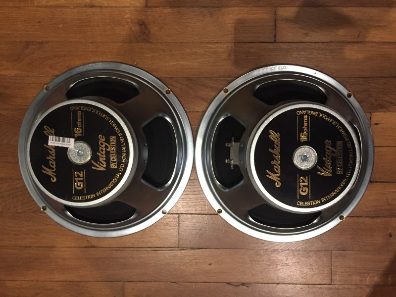 Je vends une paire de HP CELESTION en excellent état cosmétique et fonctionnement (ils sont issus d'un cab 2x12 MARSHALL Vintage).