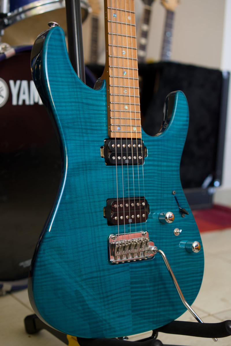 Elle possede des bois vraiment MAGNIFIQUE, la table est problement une des plus belles que j'ai pu voir sur une guitare