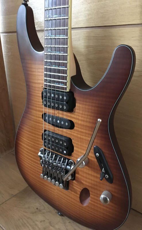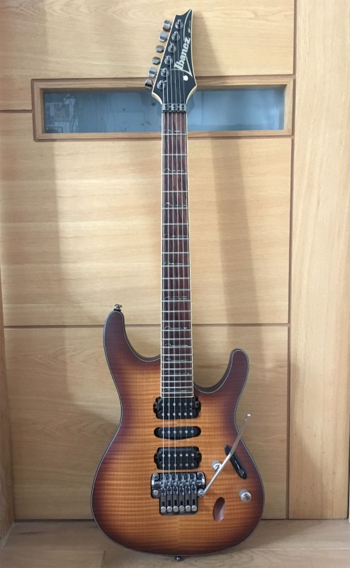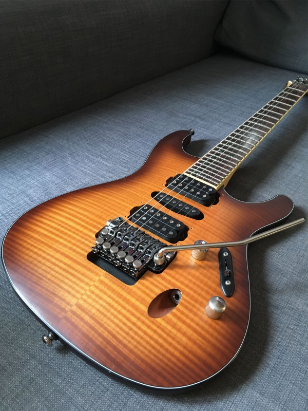 Je me sépare de mon Ibanez S770FM en Antique Burst Flat, achetée neuve en 2011 chez feu Lead Guitars.