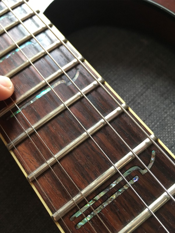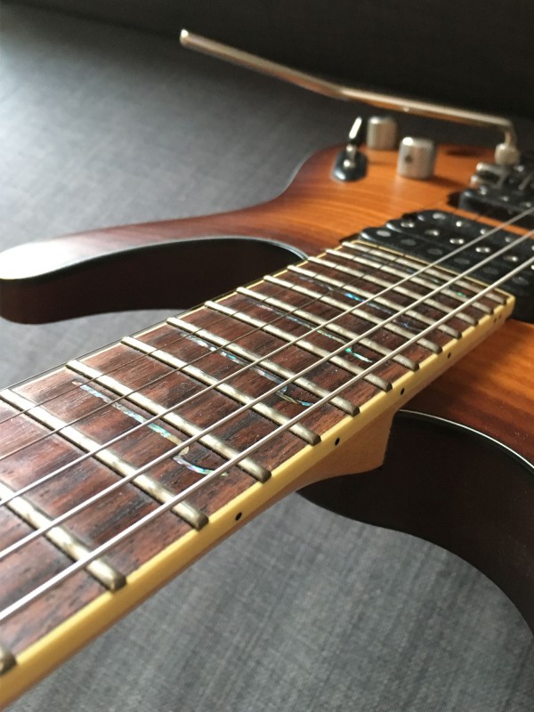 ). Le vibrato ZR tient bien l'accord, et est suuuper souple, les frettes sont en très bon état (9/10).