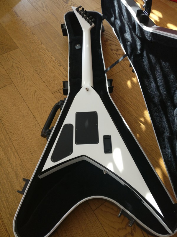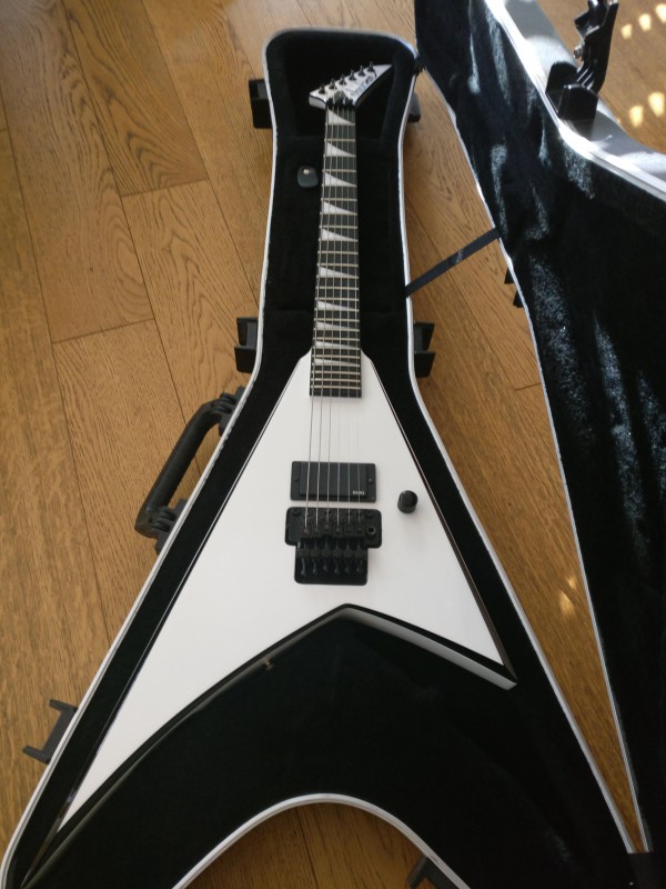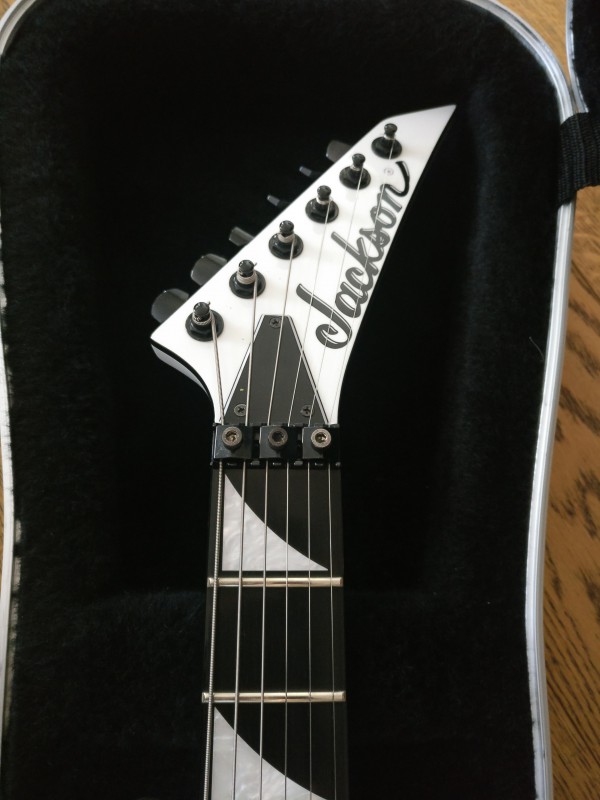 Je vends ma Jackson Randy Rhoads RR24 blanche, bevels noirs, made in Japan (2006) avec son étui Jackson d’origine. Valeur neuve 1200€.