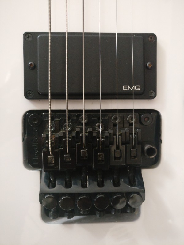 Equipée d’un unique EMG 81, d’un potard de volume et d’un Floyd Rose.