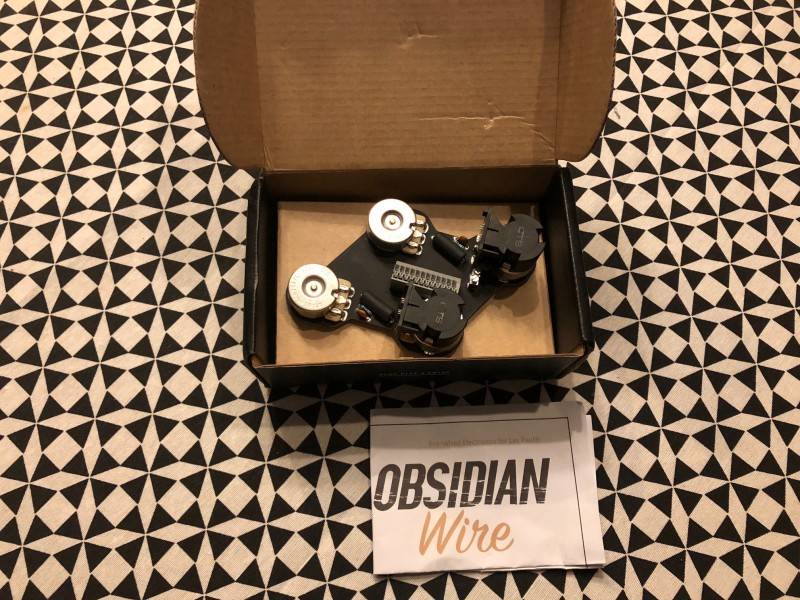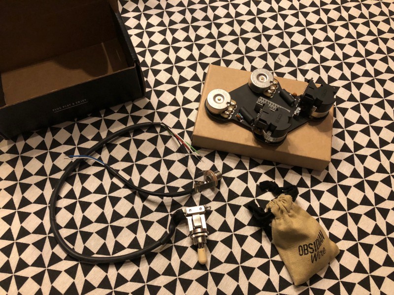 Dans l'optique de changer l'électronique d'une Les Paul MIJ des années 80, j'ai acheté ce kit de câblage chez Obsidian Wire, qui comprend les composants suivants :