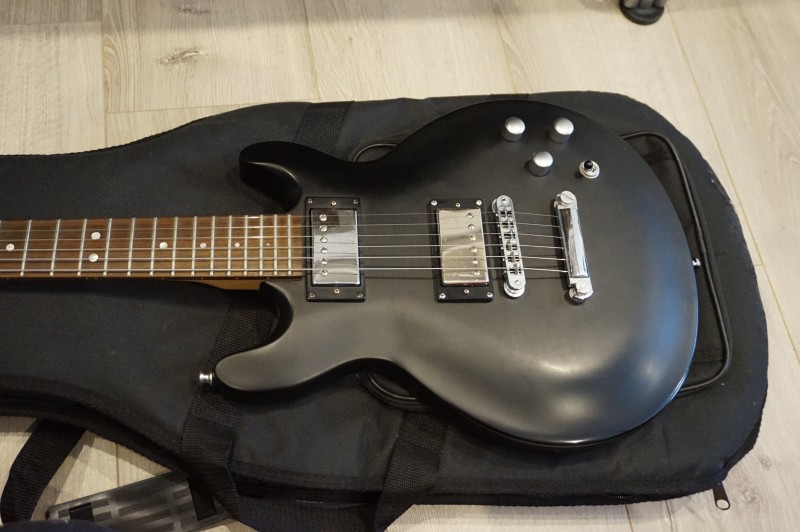 Guitare Lag Roxanne Edition limitée Satin Black équipée de micros de Gibson SG (490R et 498T), mécaniques autobloquantes GFS et chevalet+cordier Gotoh (vendue avec les pièces d'origine)