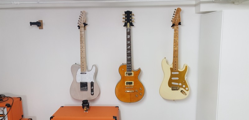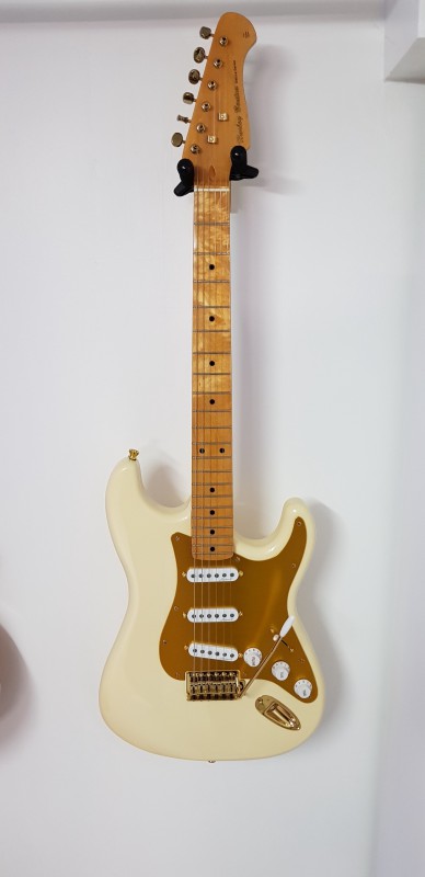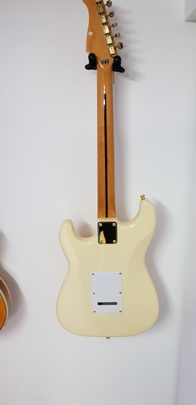 Afin de faire un peu de place je me sépare 3 guitares en état neuf, elles ont servi de décoration, il y a une harley benton ST62 deluxe en couleur Vintage White, une harley benton TE-30 et une Copie de Gibson les Paul supreme.