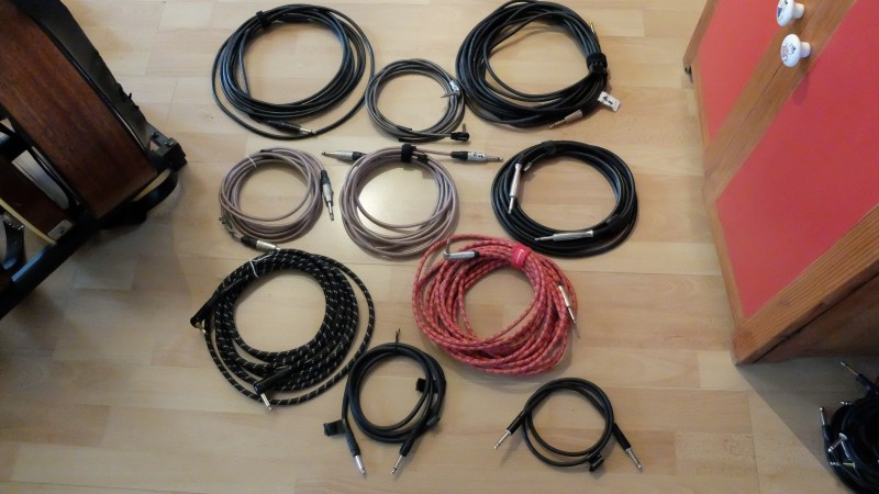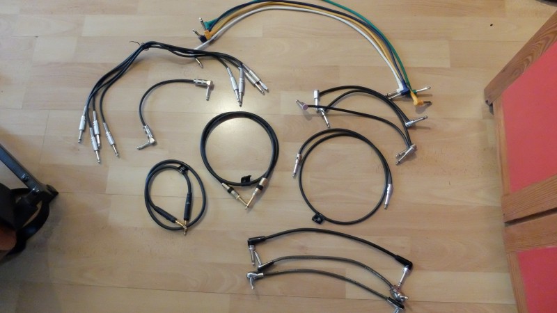 Lot 1: 18 patchs (dont Sommer, Planet wave, Evidence sans soudure,… ) pour pedalboard ou sono, jacks coudés, de 20 à 60 cm: