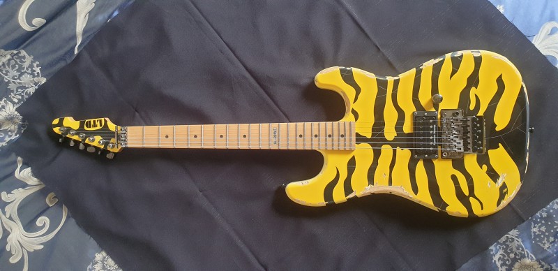 Je vends cette guitare modèle signature George Lynch "Tiger" (corps en tilleul, manche érable 22 cases avec touche érable et jumbo frets)