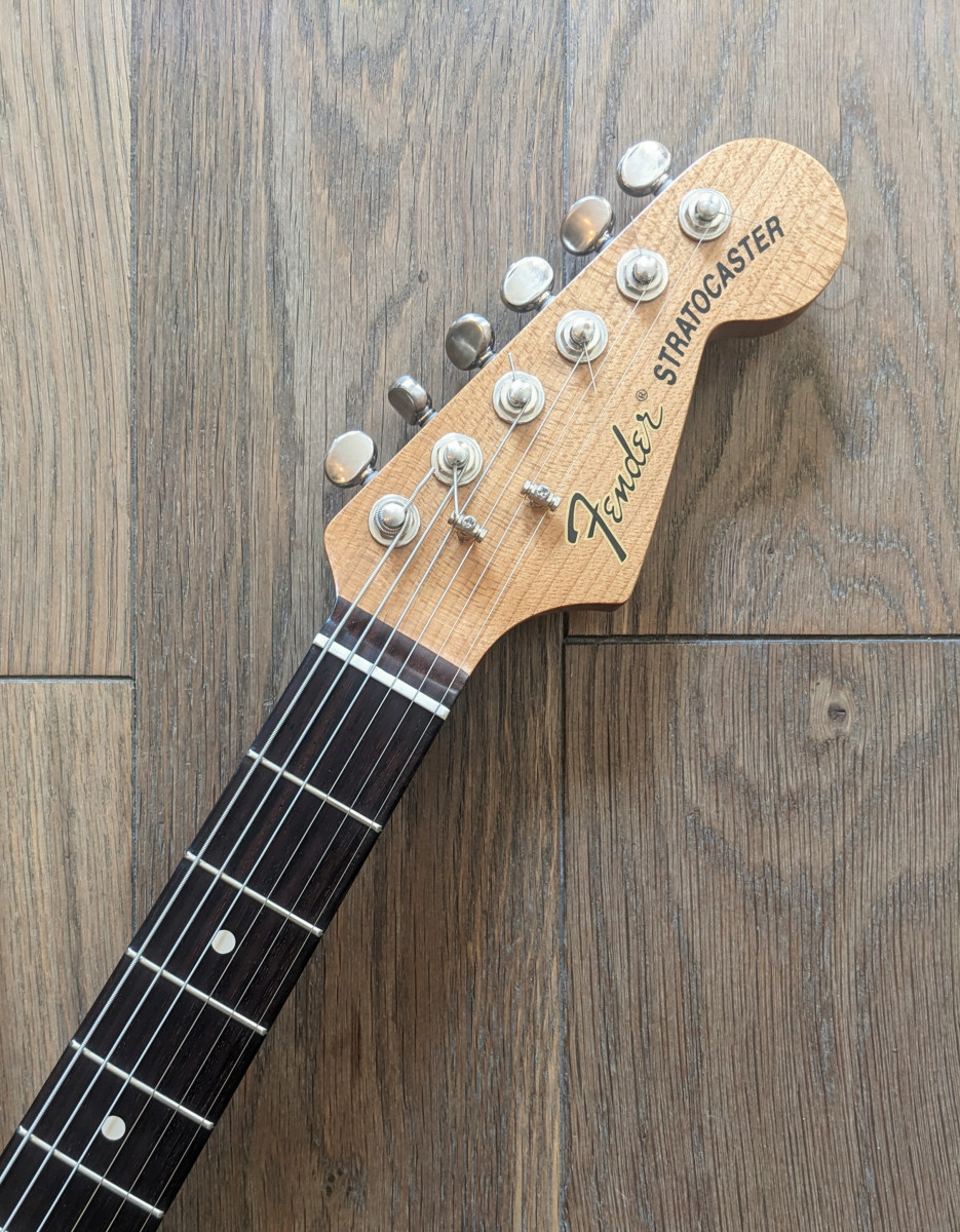 Il s'agit d'un format 7/8, c'est à dire qu'elle est un tout petit peu plus petite qu'une Strat standard. Taille parfaite pour les personnes de moins d'1m75.
