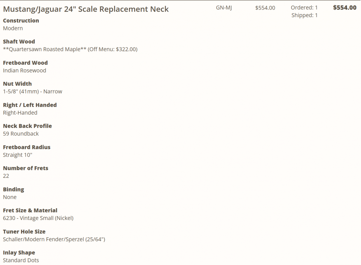 Corps mahogany, manche roasted mapple quatersawn avec touche chanfreinée, micros Kinman, vibrato Wudtone 54mm (pontets titane), mécaniques Kluson autoblocantes. Que des pièces de premier choix, assemblées avec la plus grande précision (c'est la huitième guitare que je monte).