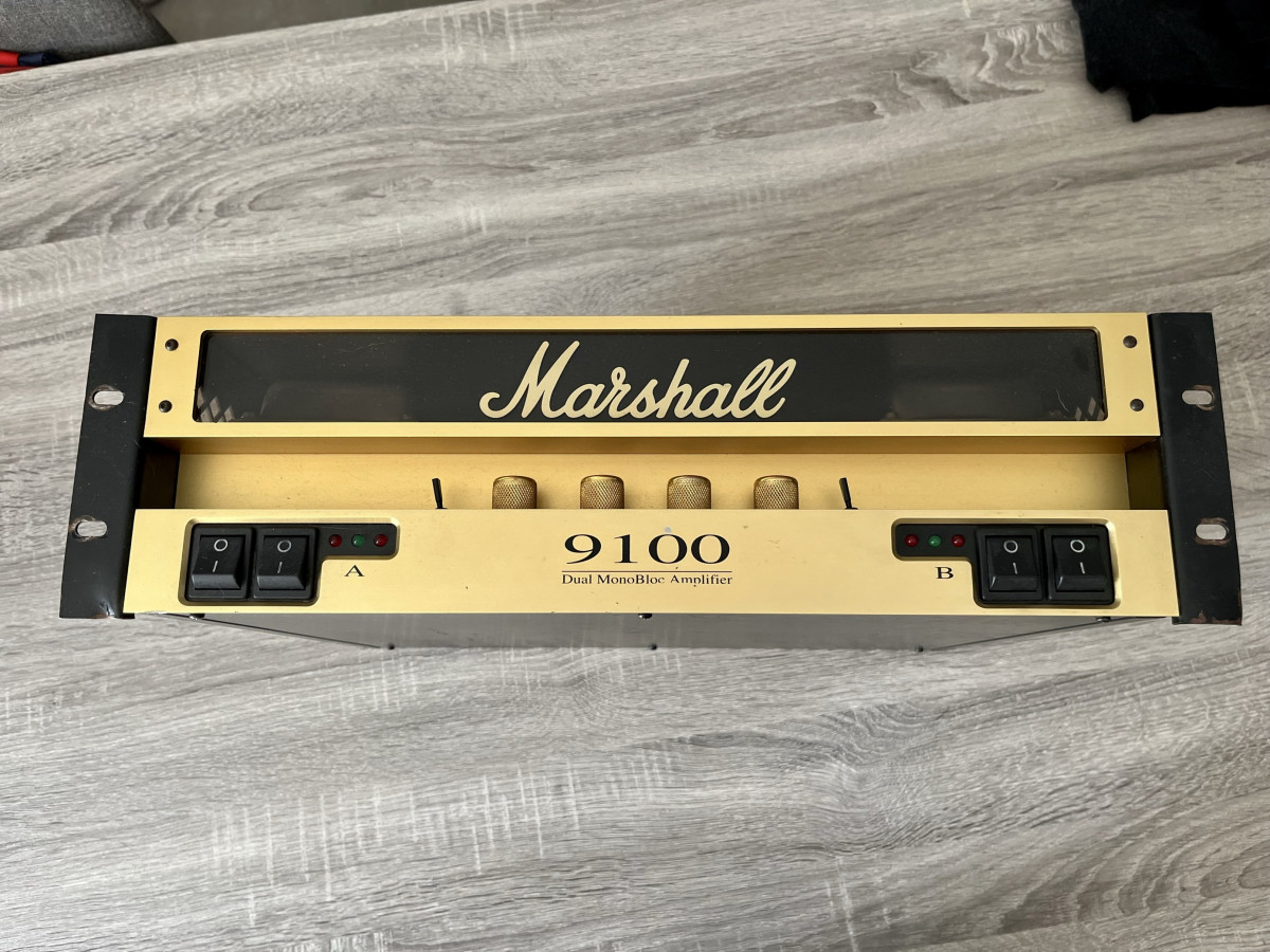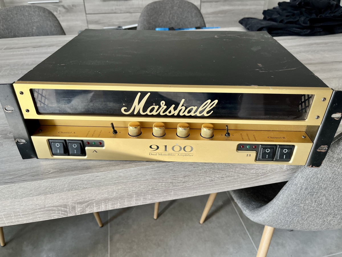Je vends une Marshall 9100, poweramp stéréo à lampes (2x50W). Tubée en 6L6WXT. Achetée ici-même vers 2006 si mes souvenirs sont bons (si l'ancien proprio se reconnait!