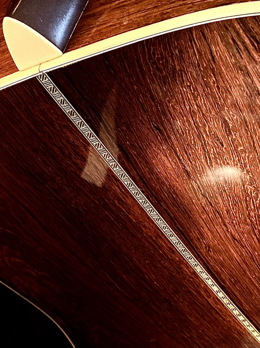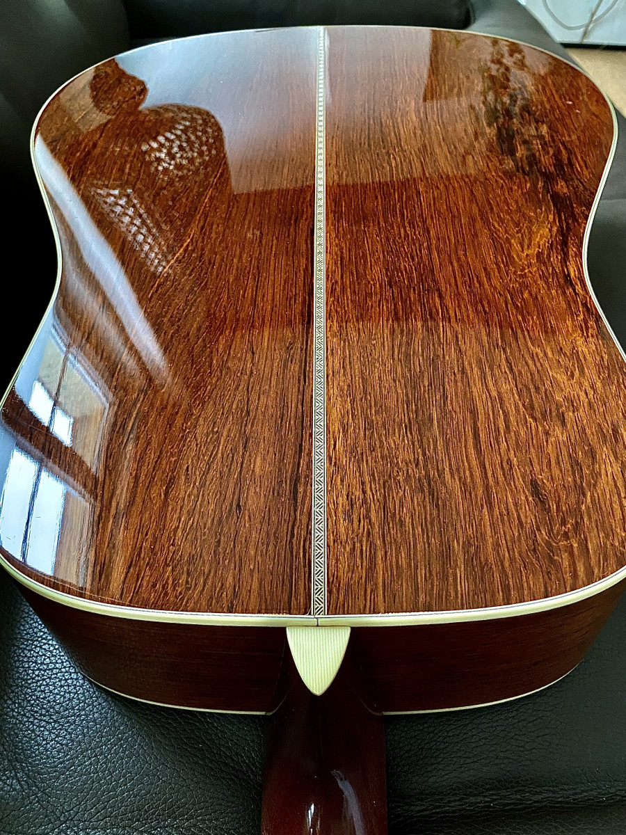 Cette guitare issue du custom shop Martin rivalise qualitativement avec le meilleur de la guitare boutique tel que Bourgeois , Collings , Goodall , Santa Cruz et je la préfère d’un point de vue sonorité à mes guitares de luthier Franck Cheval qui sont en palissandre de Rio 100 ans d’âge pour situer…