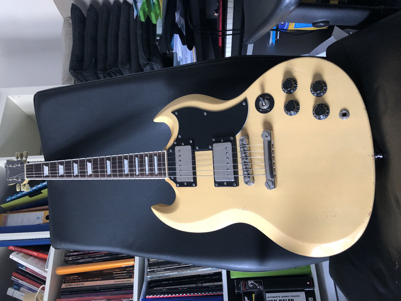 Gobnew Vintage Méga utilisateur #1 Publié par Gobnew le 23 Juil 2022, 15:40 Bonjour, Je vends ma Maybach - Albatroz 65-2 - TV yellow. En parfait état, achetée neuve en avril 2019. Jouée moins de 10h00. => PRIX : 1450€ Pas d’échange, merci. Ma guitare sur les refrains en disto et sur le solo : Alba Alba Alba Alba Alba Alba