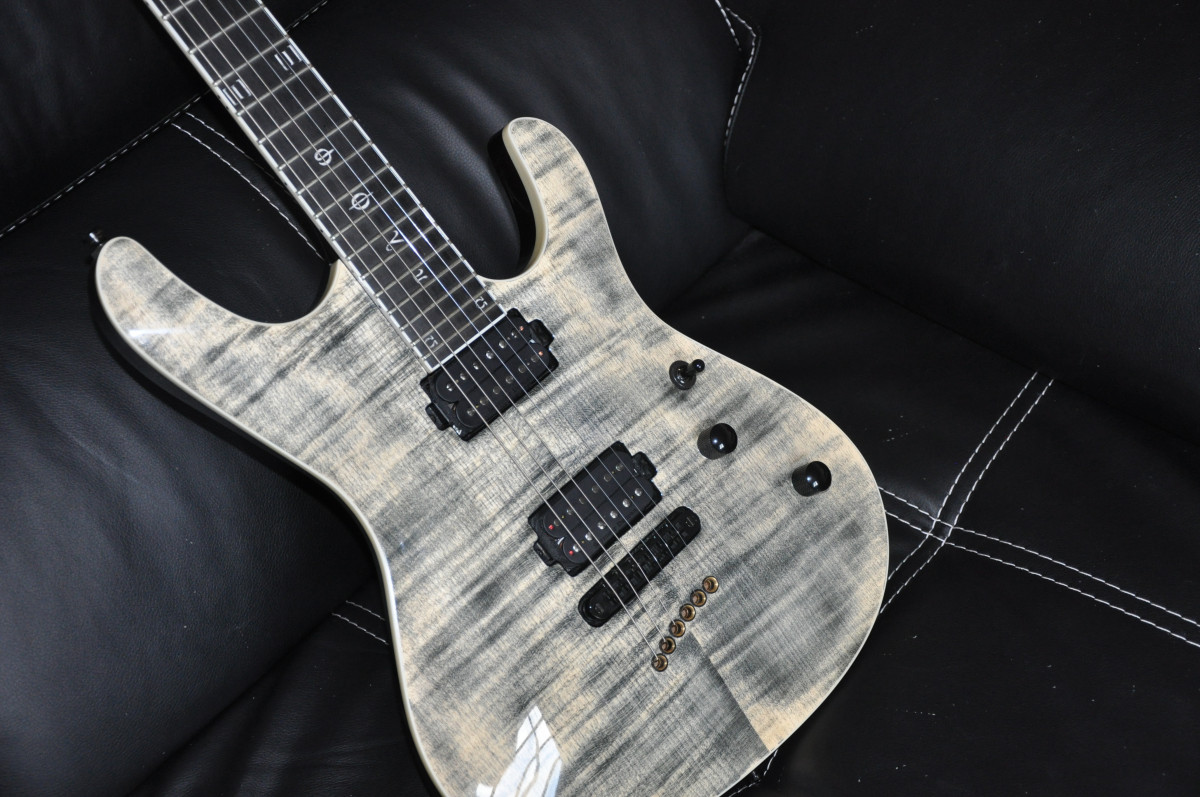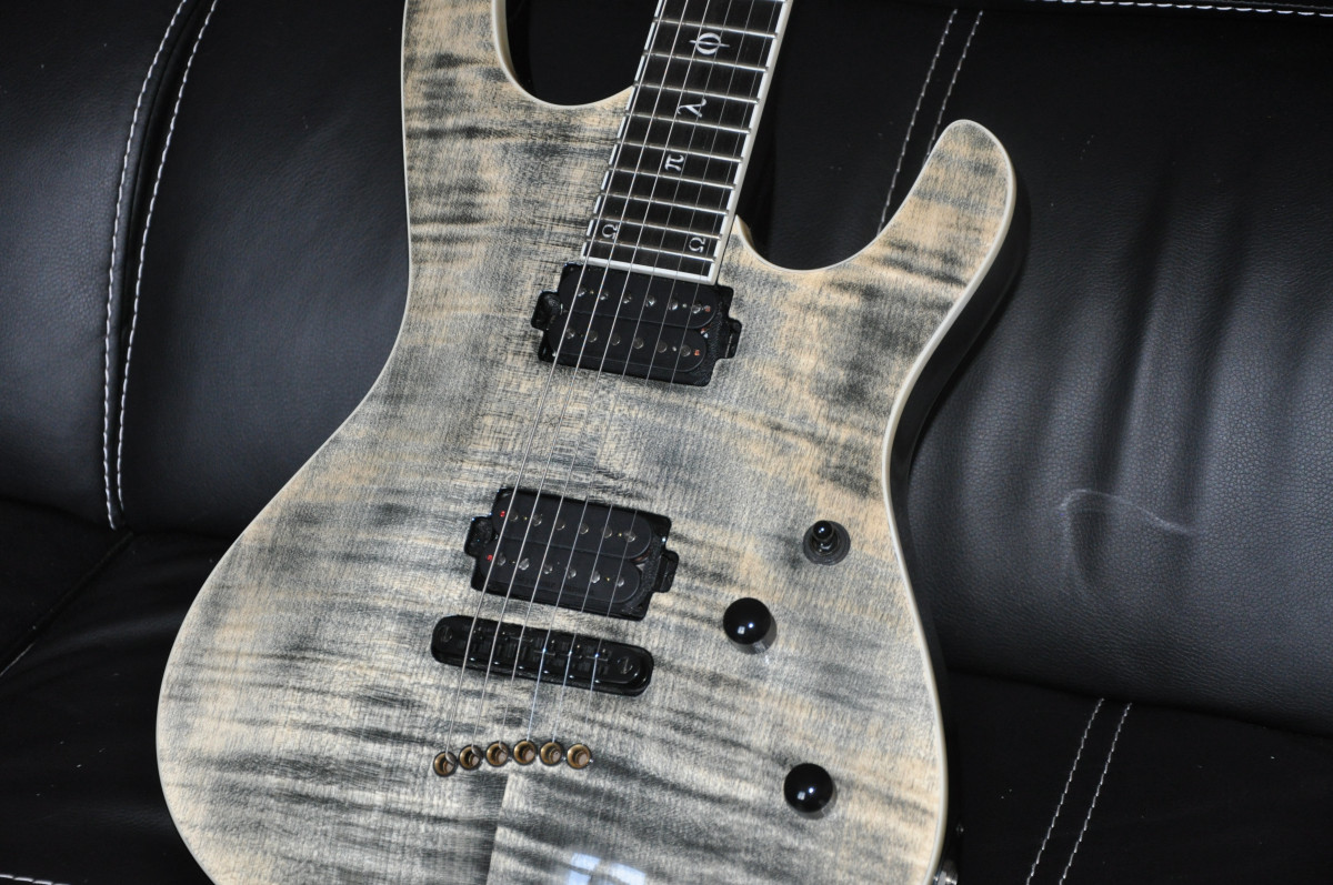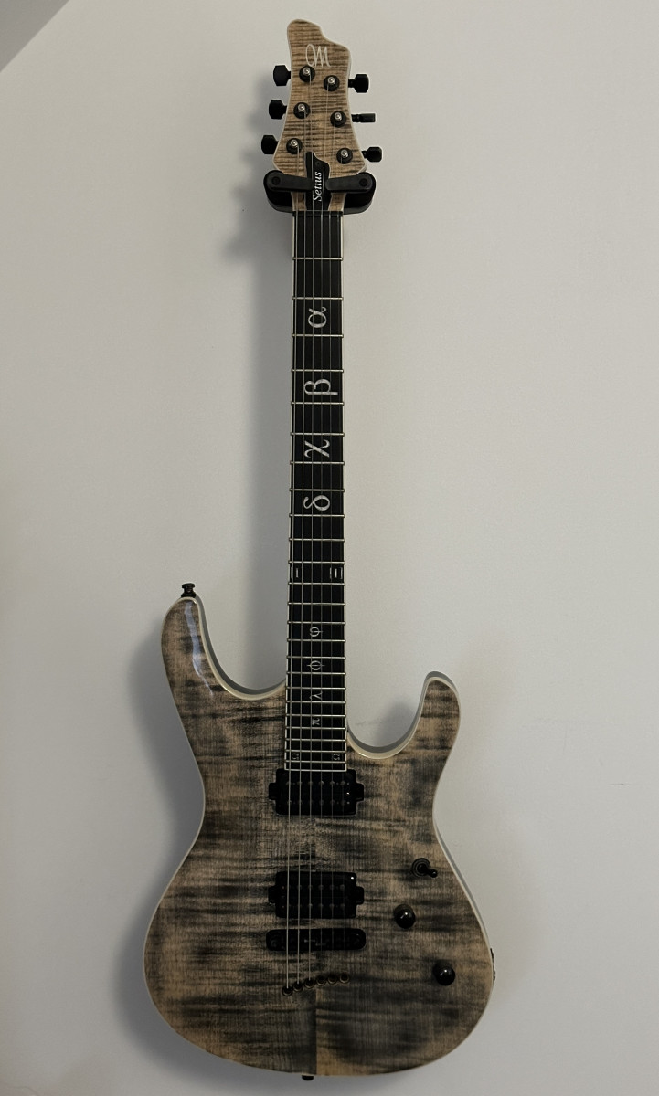 Corps et manche vissé acajou, micros Seymour Duncan Sentient et Pegasus.