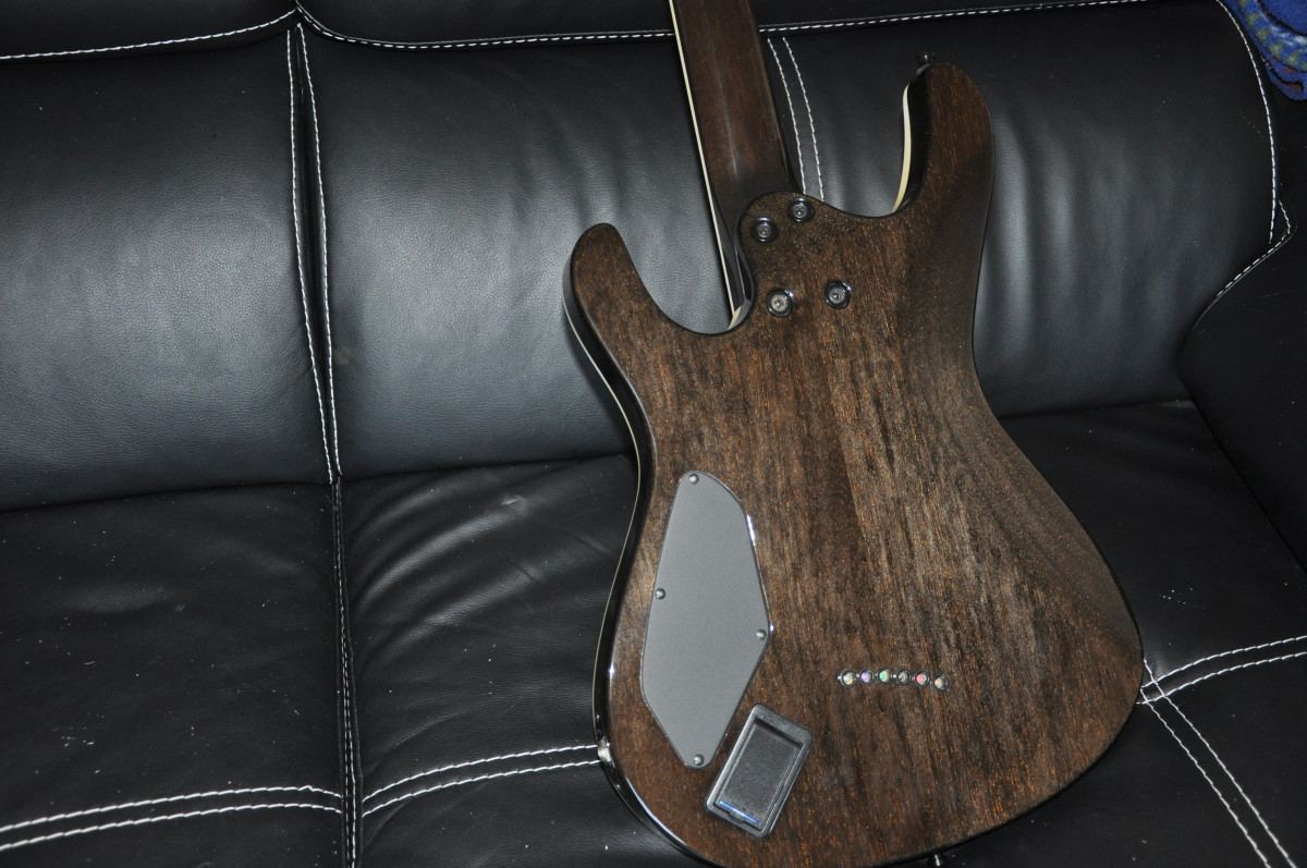 La guitare était monté en EMGs actifs d'ou le logement pile à l'arrière de la guitare.