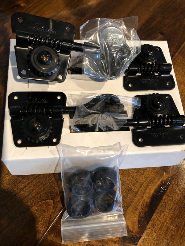 - Un set complet de 4 mécaniques Schaller noires montées une fois, comme neuves, 50€
