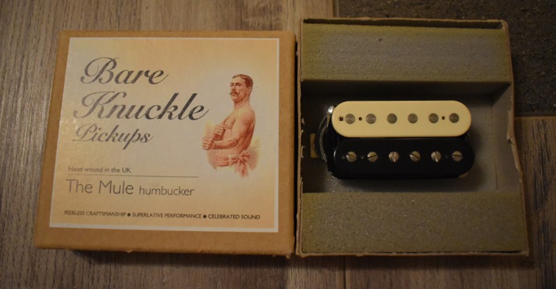 Je vends un micro Bare Knuckle The Mule en position Neck de couleur Reverse Zerba à 2 conducteurs, Standard Spacing et Long Leg.