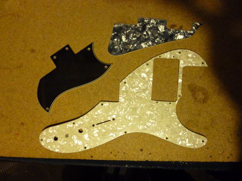 le noir vient d'une Epiphone SG, il a été pas mal utilisé, du coup il y a des traces de coup de mediator dessus