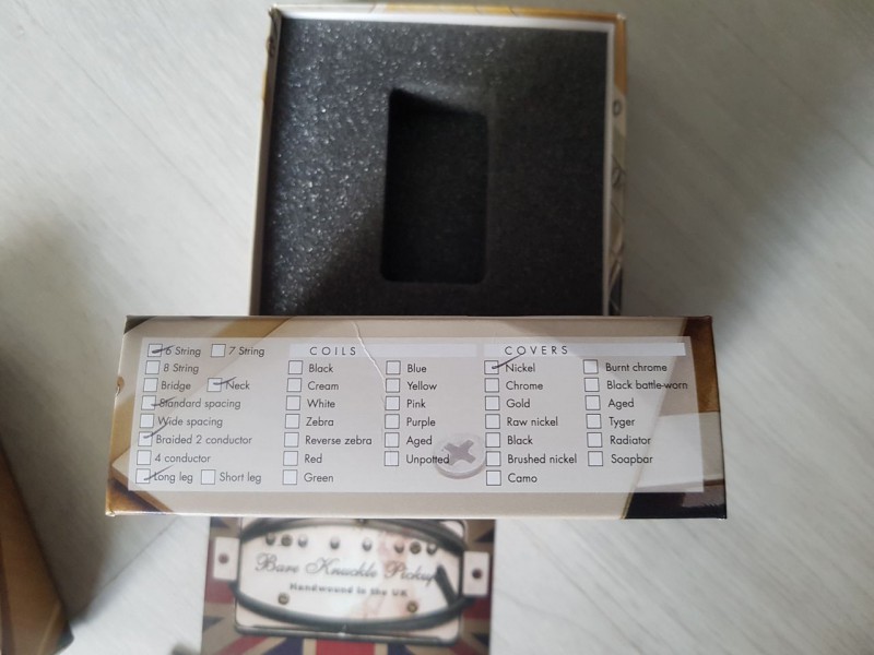lems Special Méga utilisateur #1 Publié par lems le 24 Sep 2017, 18:21 Hello, Je vends un micro Bare Knuckle Rebel Yell neck. Alnico V Standard spacing 2 fils long leg Capots nickel Longueur de fil d'origine. Vendu dans sa boite d'origine avec médiator et cordes. 90€ in