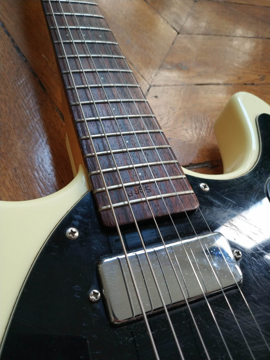 Vends Mosrite Johnny Ramone blanche (couleur qui vire plutôt sur le crème) datant début 2000 sous licence de fabrication japonaise Kurokumo et achetée aux USA. Numéro de série 3955.