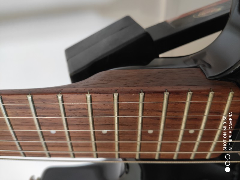 Elle est en parfait état, aucun poc à signaler. Il y a une micro-fissure au niveau de la jointure touche/manche mais faut vraiment avoir le nez dessus (j'ai pas réussi à la prendre en photo).