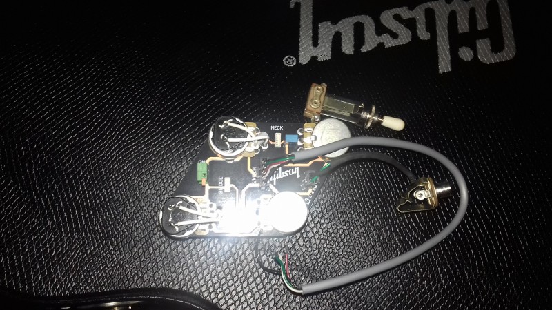 Voilà je vends ou échange ce kit électronique complet quickconnect pour Les Paul. ( circuit avec potards + 2 prises micros + jack et toggle switch).
