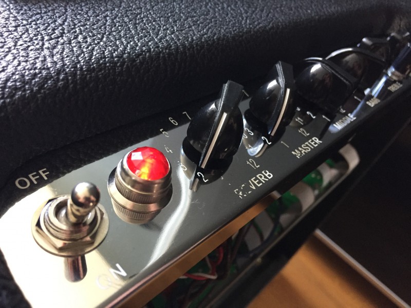 Une partie des inscriptions du potard de reverb sont partiellement effacées (photo ci-dessus)