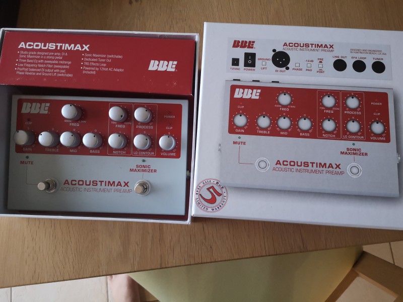 Preamp BBE acoustic max, nickel aussi mais manque l alim, il était alimenté avec l alim de mon pedal board et je sais plus où j ai foutu le transfo : 99 euros