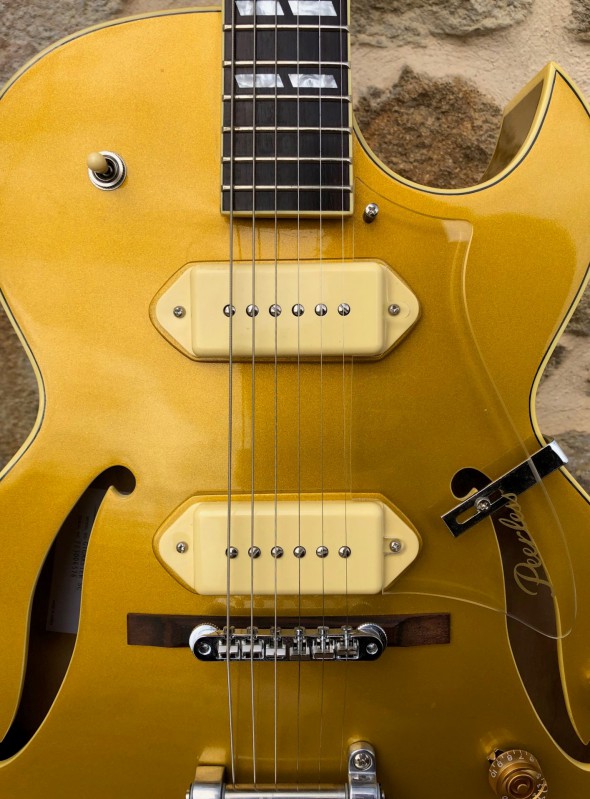 Très belle lutherie, jouabilité parfaite, micros P90 qui sonnent fat, excellent pour du jazz, rockabilly, soul, blues etc... avec le look en plus.