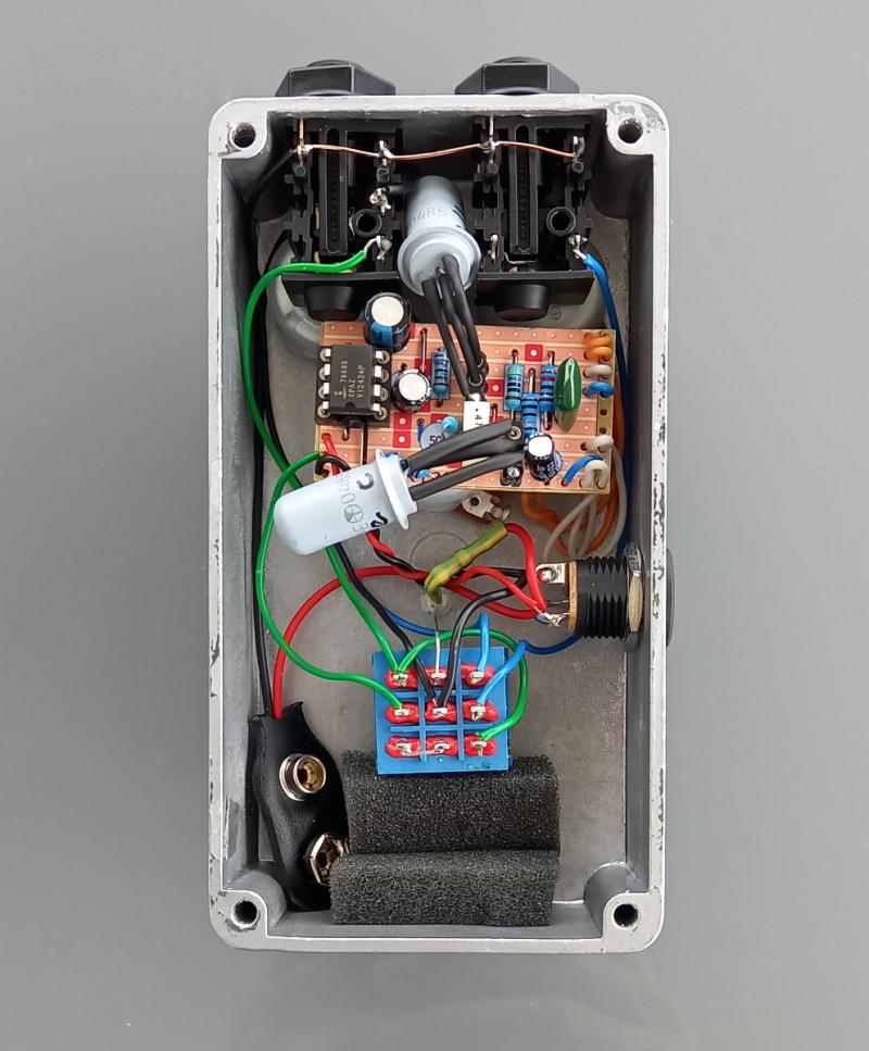 C'est une fuzz face germanium que j’ai conçue et réalisée avec comme cible le son du solo de Time sur l’album Dark Side of The moon des Pink Floyd.