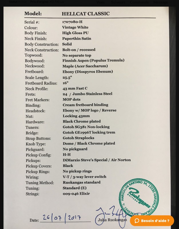 PS: vous pouvez voir une ligne dans le vernis au niveau de la jonction corps/manche (dernière photo), voici le message Juha Ruokangas à ce sujet :