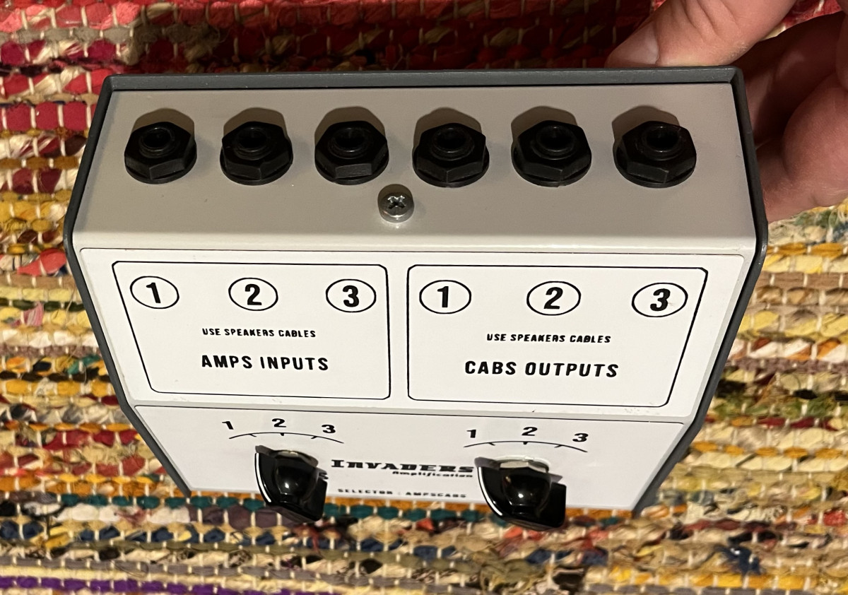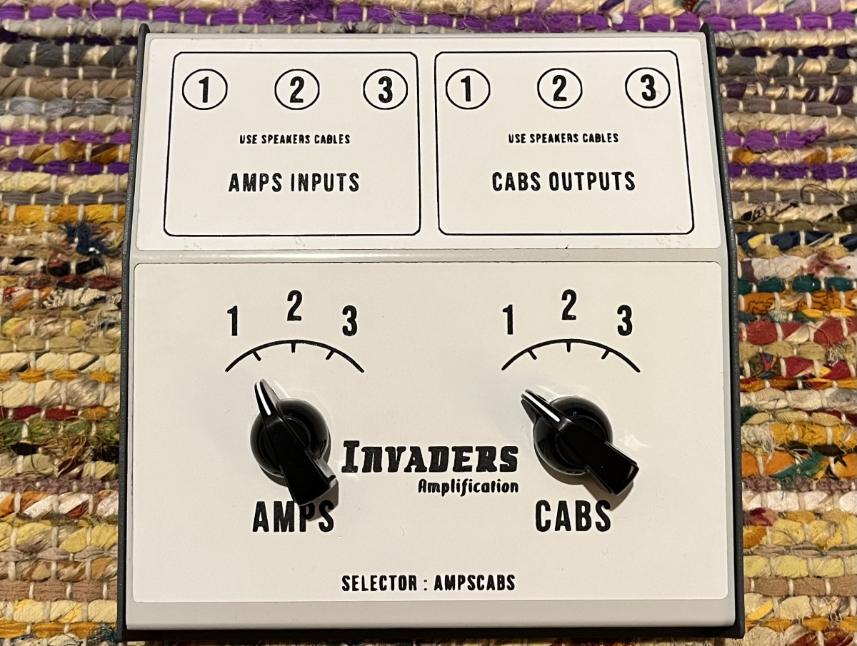 A vendre ce sélecteur d’amplis et cabinets, très pratique en studio et à la maison pour qui possède plusieurs amplis et cabinets (ou Captorx par exemple).
