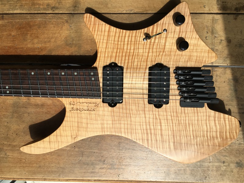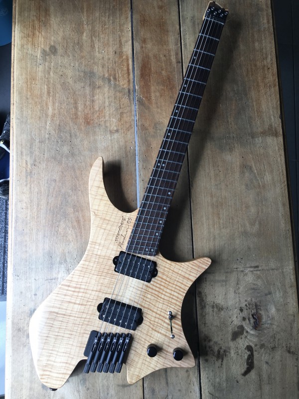 je revends cette guitare électrique headless Strandberg Boden OS 6 avec sa belle table en érable flammé, son fameux manche Endurneck.