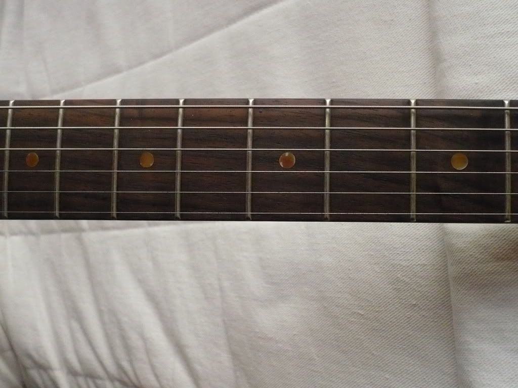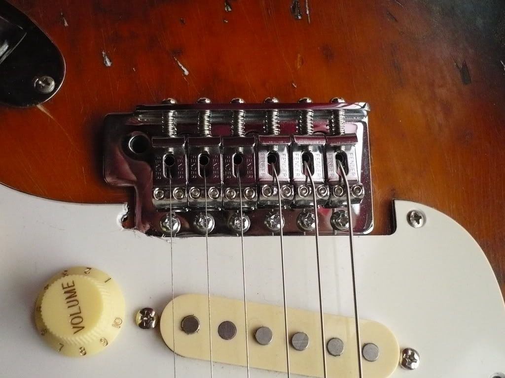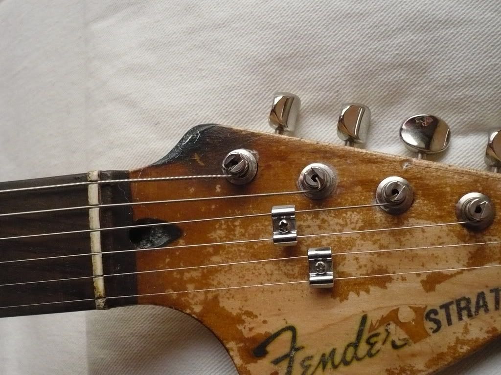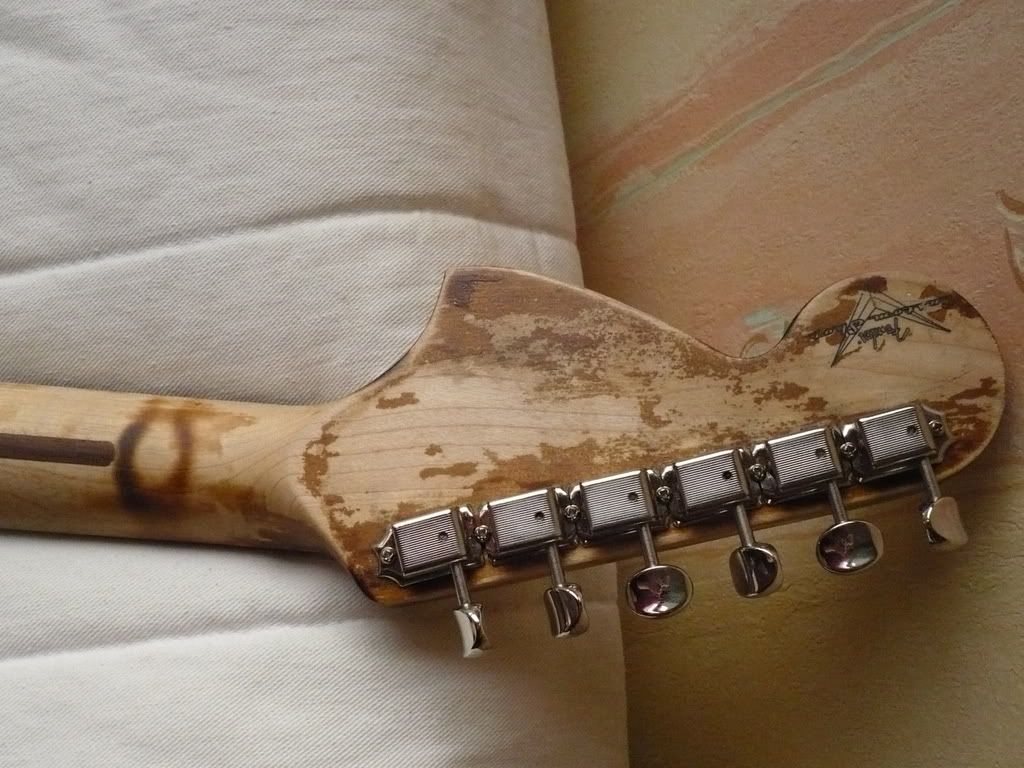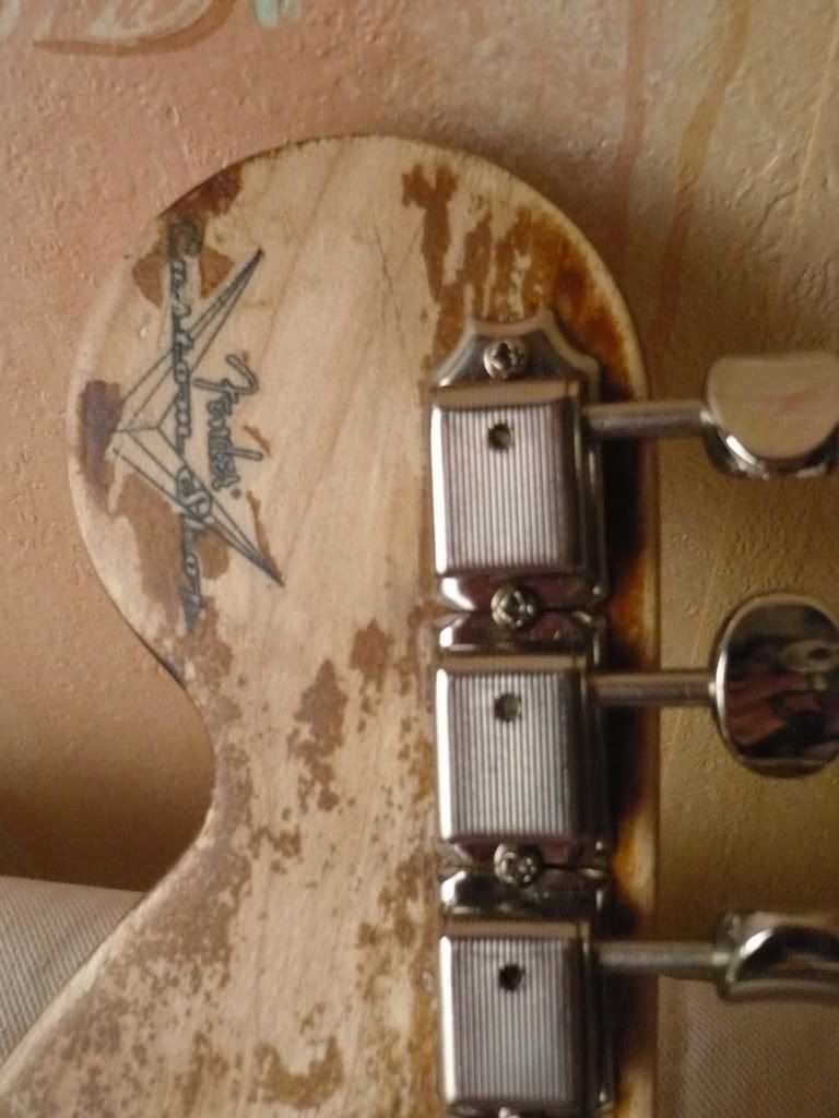 Le vibrato est sous licence Fender, ainsi que les mécaniques. C'est vraiment une bonne gratte Vintage qui a besoin d'un bon réglage, d'un bon positionnement de la plaque... enfin, elle a besoin d'être réviser quoi