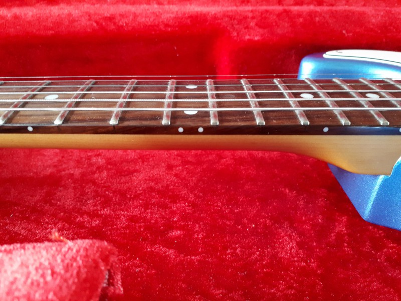La guitare est en bon état général, hormis 2 légers pocs de vernis sur la tranche supérieure.