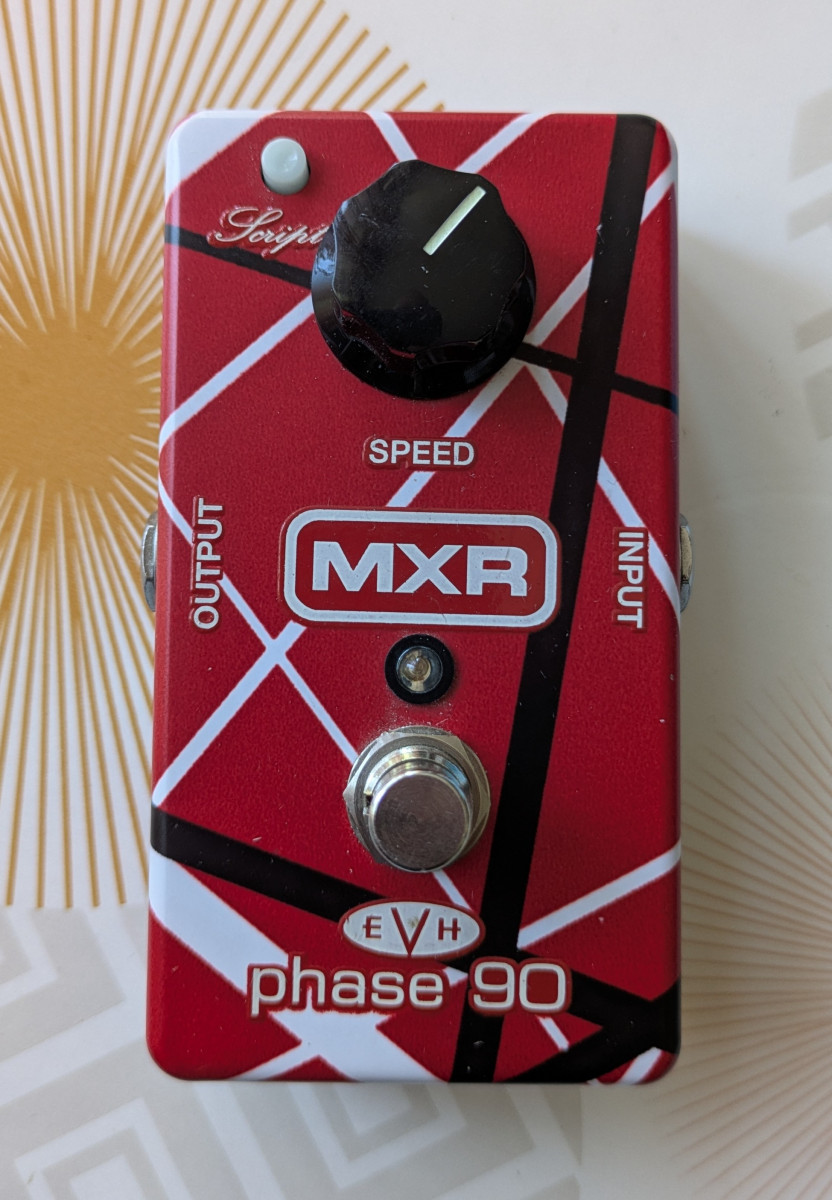La réinterprétation du Phase 90 orange par Edward Van Halen (Stripes, la led est bleue et le bouton « Script » qui permet à tout moment de choisir entre les sonorités Vintage "Script Logo" et Modern "Block Logo").