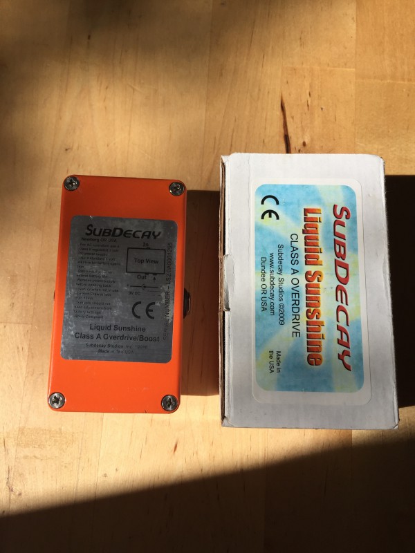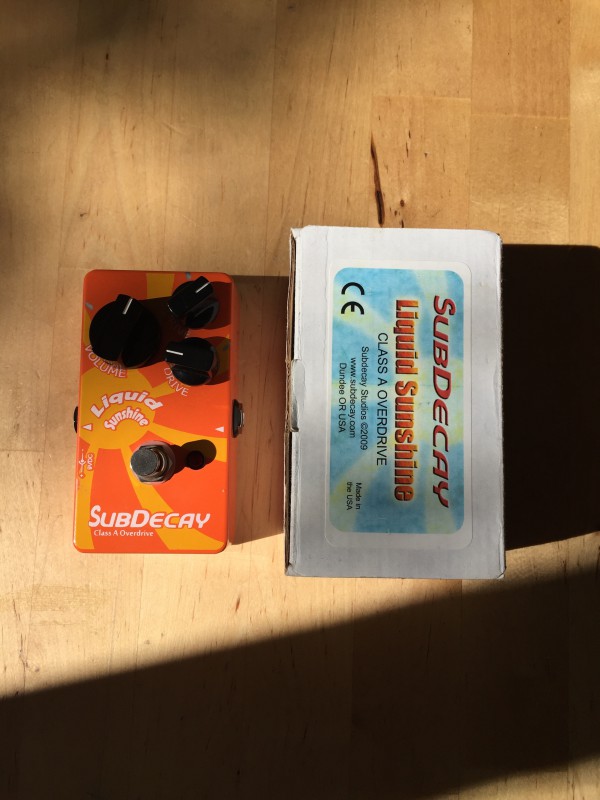 je vends une Subdecay Liquid Sunshine, pedale allant du low gain à l’overdrive fuzzy. L’originalité de la pédale réside dans ses régalges : le premier potard de drive permet de régler un niveau de drive pour l’ensemble du spectre, et le second d’en ajouter sur les fréquences médiums et aigues.