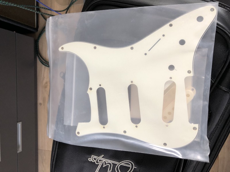 Pickguard + potards originaux (blancs) fournis avec la guitare.