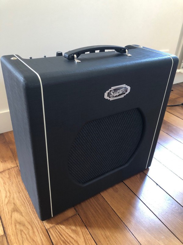 C’est un ampli à lampe 15W avec HP de 12 pouces et master volume. Il est très compact et donc idéal pour être transporté. Il convient aussi bien pour jouer en groupe qu'en appartement.