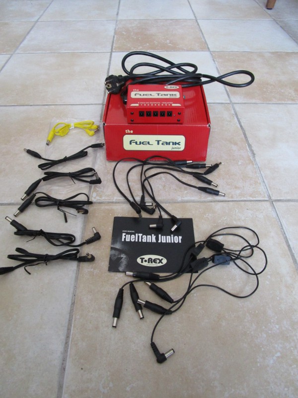 Je vous propose un bloc d'alimentation T-Rex Fuel Tank Junior première version en bon état, avec tous ses nombreux câbles (12 + alim), notice et boite d'origine, pour alimenter jusqu'à une dizaine de pédales.
