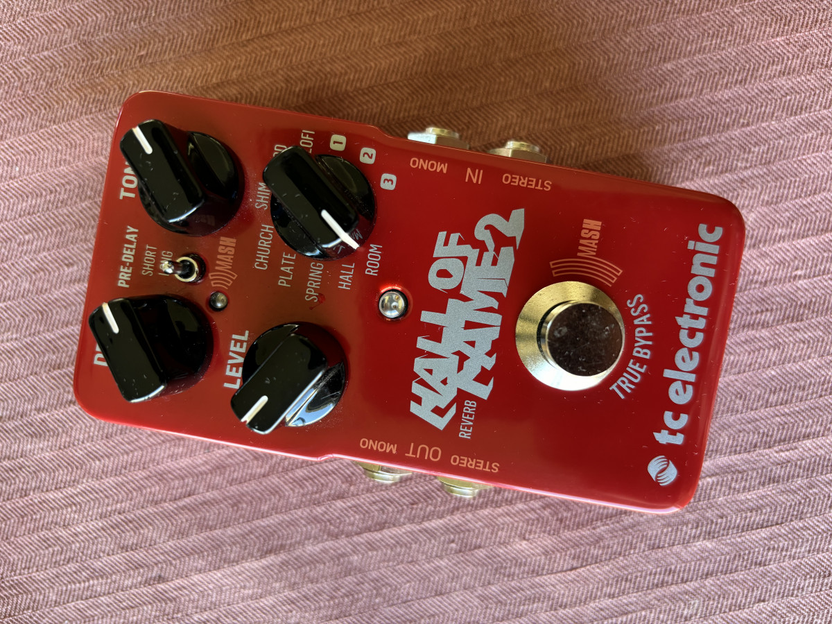 La Hall of Fame 2 est une pédale de réverbération mono/stéréo proposant 11 types de réverbérations et des réglages du Decay, du Tone, du volume du son réverbéré (Level) et d’une bascule entre prédélai court ou long. De plus, le footswitch a été remplacé par le système MASH qui permet de simuler le comportement d’une pédale d’expression.
