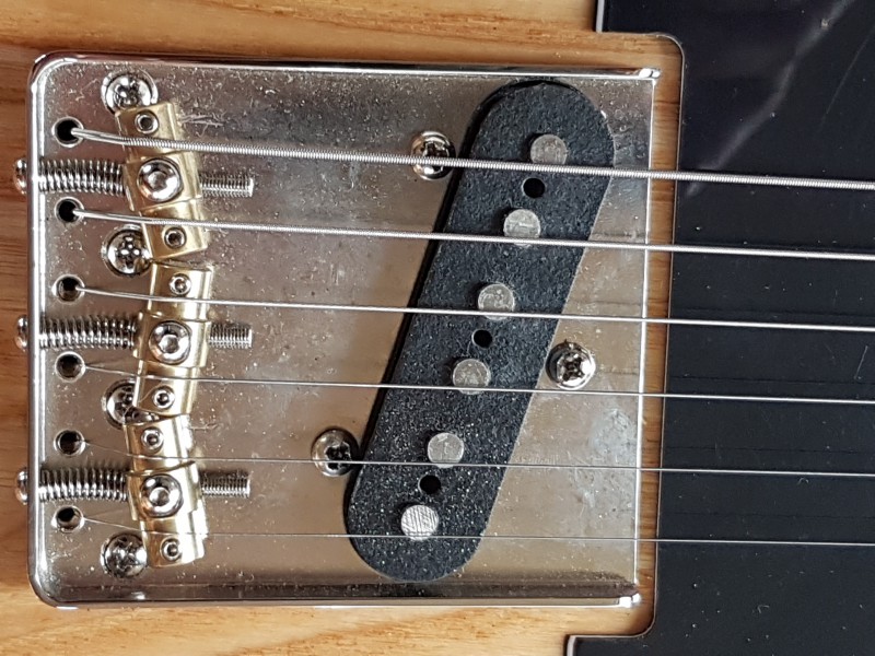 Micros : (je ne connais pas la marque) ; en manche, humbucker rond et chaud, pas brouillon ; En chevalet, simple sonnant bien télé, le twang est là sans le côté « harsh » de beaucoup de micros de télé, celui-ci n’est pas agressif.