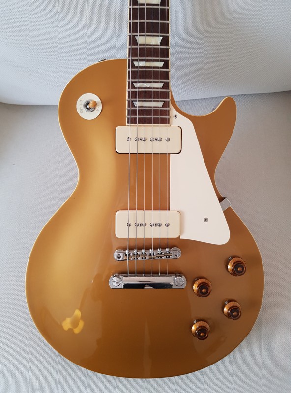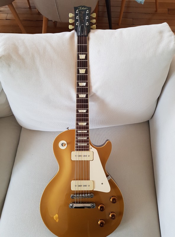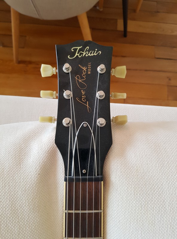 Je vends cette superbe Tokai Goldtop LS160S de 2011, état nickel hormis deux petits pocs (cf photos), frettes 10/10, lutherie au top et son à l'avenant ! Le sillet de tête a été remplacé par l'ancien proprio par un graphtec (je crois).
