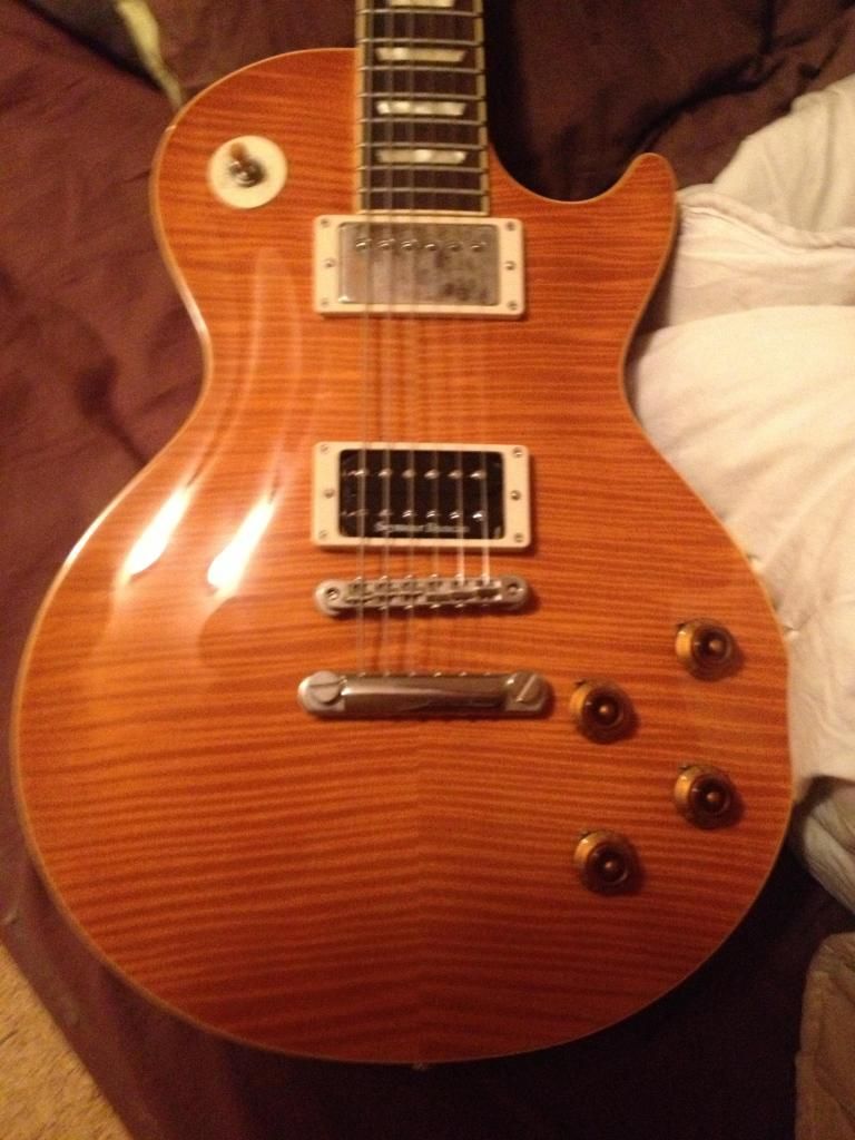 L'important est la résonance de cette guitare où la note tient très longtemps, tu entends de la tête au corps, sur ma gibson LP standard faded c'était moins important pour donner une comparaison.