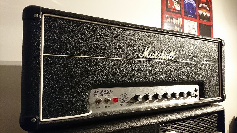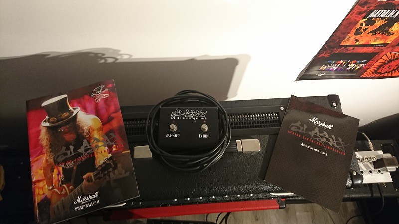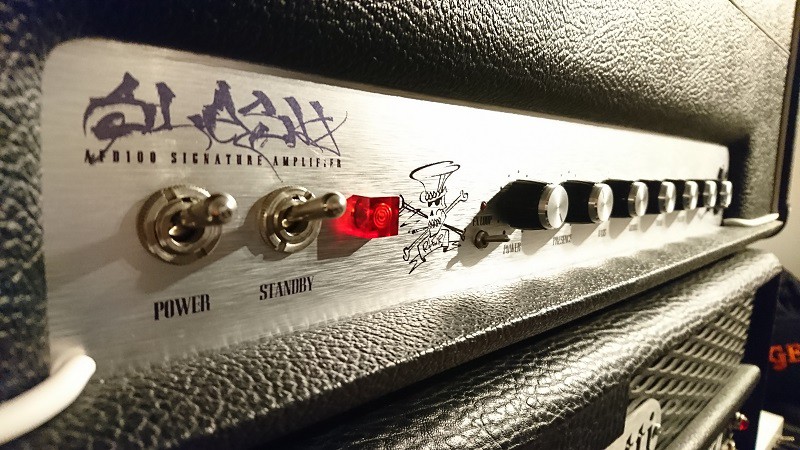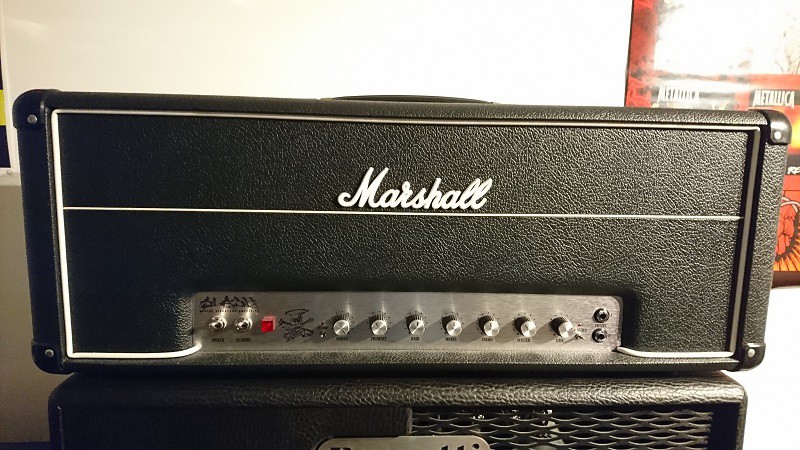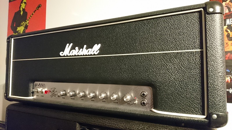 Vous trouverez plein d’avis, de vidéo et toute la description technique de la bête en deux clics. Je me permets juste d’ajouter mes impressions personnelles : ce n’est pas une tête pour jouer dans la chambre avec bébé qui dort à côté (malgré le réducteur de power intégré). Même si c’est pratique, on n’en tire pas le son qu’on souhaite avec 0,1 W de puissance dans un 2x12 ou un 4x12 ! Pour moi, en gros elle commence à bien s’exprimer à volume de répète pour fixer les idées. Il faut un peu de puissance pour faire bouger les HP de manière à ce qu’ils aient un rendement agréable. De plus, elle n’est pas si simpliste à régler pour obtenir LE son, et il ne faudra pas hésiter à jouer avec le volume et le tone de la gratte pour affiner tout ça. Pour finir, ce n’est pas non plus une tête destinée à jouer uniquement du Slash !! Elle a d’autres ressources dans le bide !